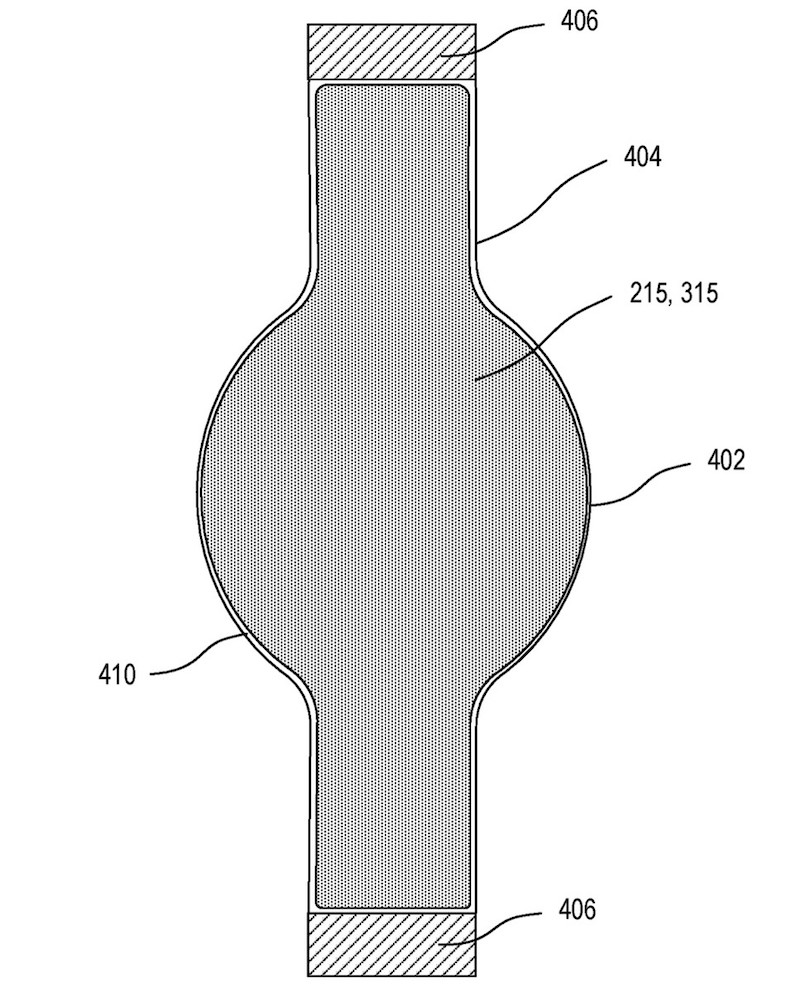 สิทธิบัตรดังกล่าว แสดงให้เห็นการออกแบบ Apple Watch ในอนาคตที่มาพร้อมจอแสดงผลแบบยืดหยุ่น เพื่อให้โค้งงอเข้ากับข้อมือของผู้สวมใส่ได้ เนื่องจากพื้นที่ของจอแสดงผลจะต้องครอบคลุมทั้งหน้าปัดและสายนาฬิกา