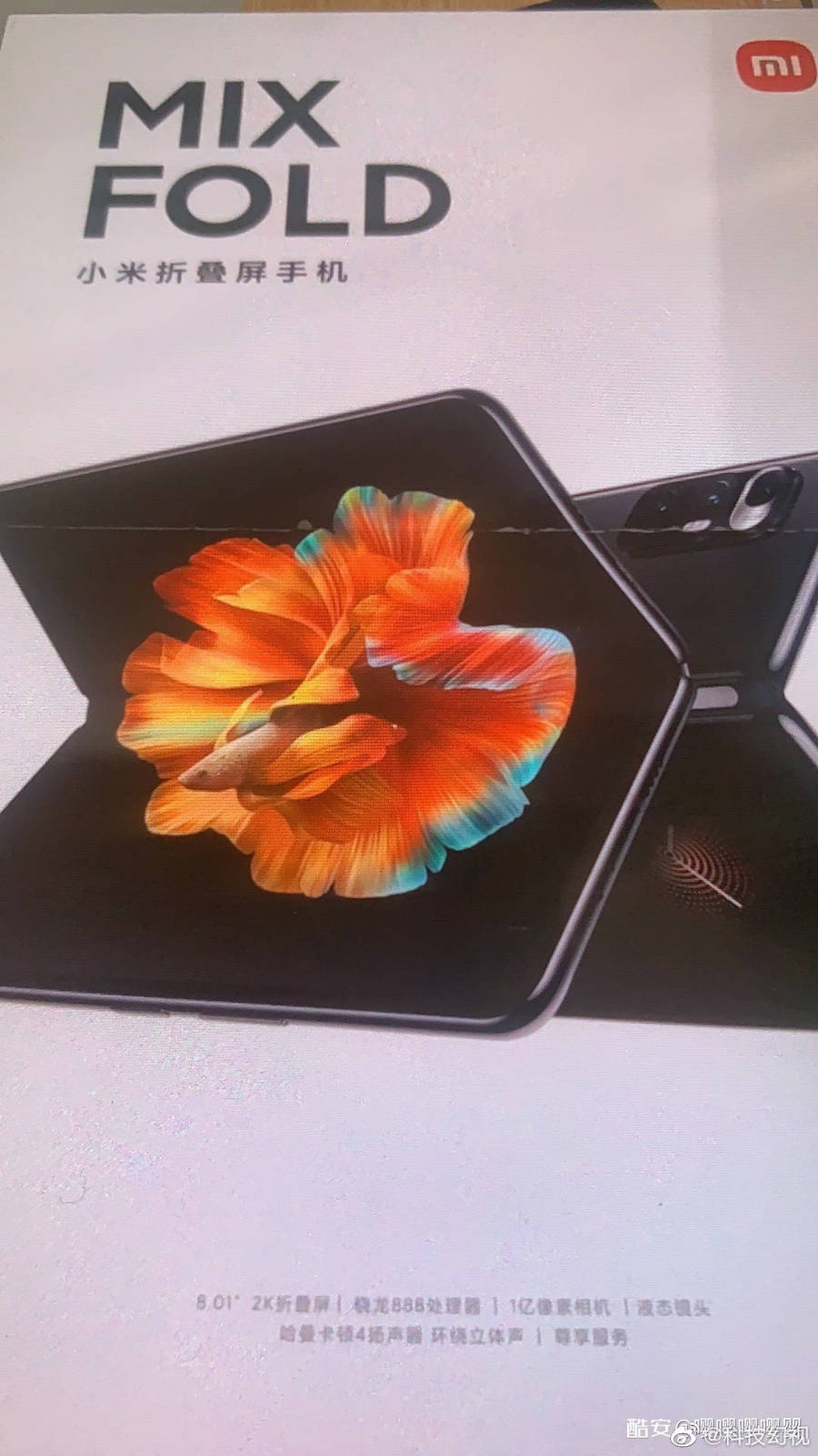 รูปภาพโปสเตอร์ Xiaomi Mi MIX Fold ยังระบุสเปกหลักไว้ที่ด้านล่าง ซึ่งบอกว่าจะใช้จอแสดงผล 2K ให่้สีสันมากกว่า 1 พันล้านสี และมาพร้อมชิปประมวลผล Qualcomm Snapdragon 888 แต่น่าเสียดายที่ยังไม่ทราบกำหนดการเปิดตัว