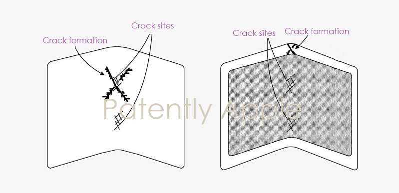 สิทธิบัตรของ Apple อธิบายถึงการเพิ่มชั้นผิวพิเศษให้กับจอแสดงผลแบบพับได้ ที่ดูเหมือนจะป้องกันไม่ให้รอยแตกหรือรอยพับปรากฏขึ้น โดยใช้ “อนุภาคฟิลเลอร์ในเมทริกซ์โพลีเมอร์” ซึ่งอาจเป็นอนุภาคเซรามิก Al2O, MgAlO 4, SiAlON, AlON หรือ ZrO2