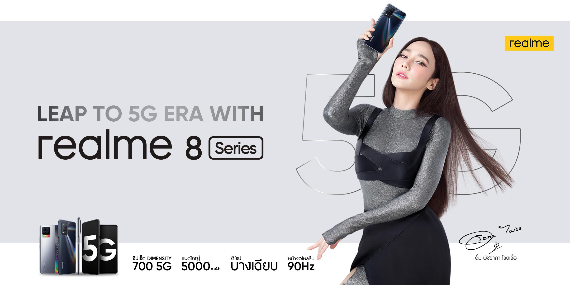 realme แบรนด์สมาร์ทโฟนเพื่อคนรุ่นใหม่ที่เติบโตเร็วที่สุดในโลก เปิดตัวว่าที่ realme 5G Ambassador อย่างคุณอั้ม พัชราภา ไชยเชื้อ ด้วยบทบาทผู้นำคนรุ่นใหม่ ที่จะพาทุกท่านก้าวเข้าสู่ยุคแห่งความล้ำสมัยด้วยพลังแห่งอนาคต พร้อมถ่ายทอดความกล้าที่จะกระโดดตามแนวคิด Dare to leap สู่การเป็นแบรนด์ผู้นำเทคโนโลยีด้าน 5G นอกจากนี้ ยังเผยโฉมสมาร์ทโฟนรุ่นใหม่ล่าสุดอย่าง realme 8 Series สมาร์ทโฟน 5G ที่มาพร้อมกับสโกแกน ‘ความเร็วไร้ขีดจำกัด’ โดยมีไฮไลท์ ดังนี้