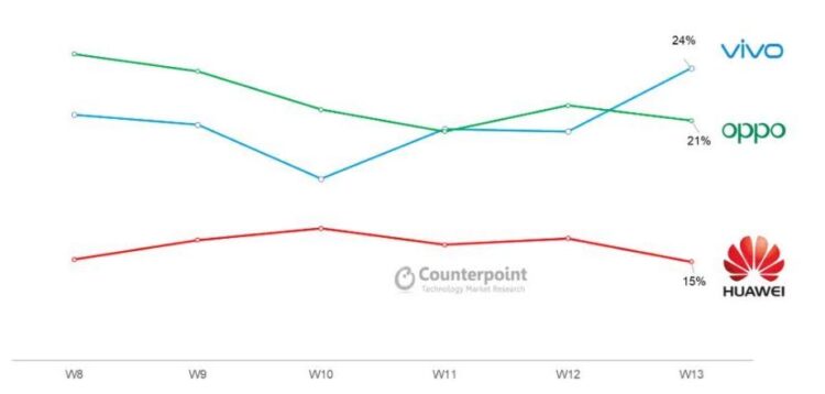 Vivo แซง OPPO และ Huawei ขึ้นแท่นเบอร์ 1 ตลาดสมาร์ตโฟนประเทศจีนเป็นครั้งแรก