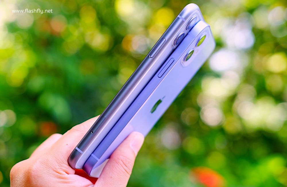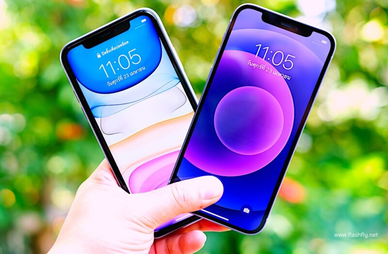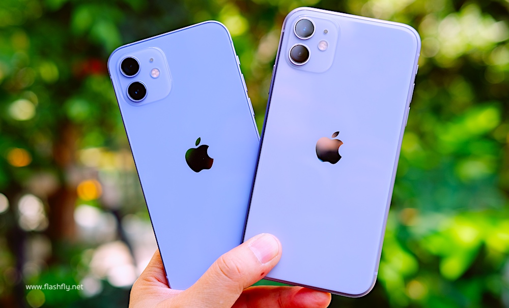 เมื่อนำ iPhone 12 สีม่วงมาเปรียบเทียบกับ iPhone 11 สีเดียวกันจะเห็นว่าสีม่วงของ iPhone 12 นั้นดูสดใสกว่าคนละเฉดสีอย่างชัดเจน