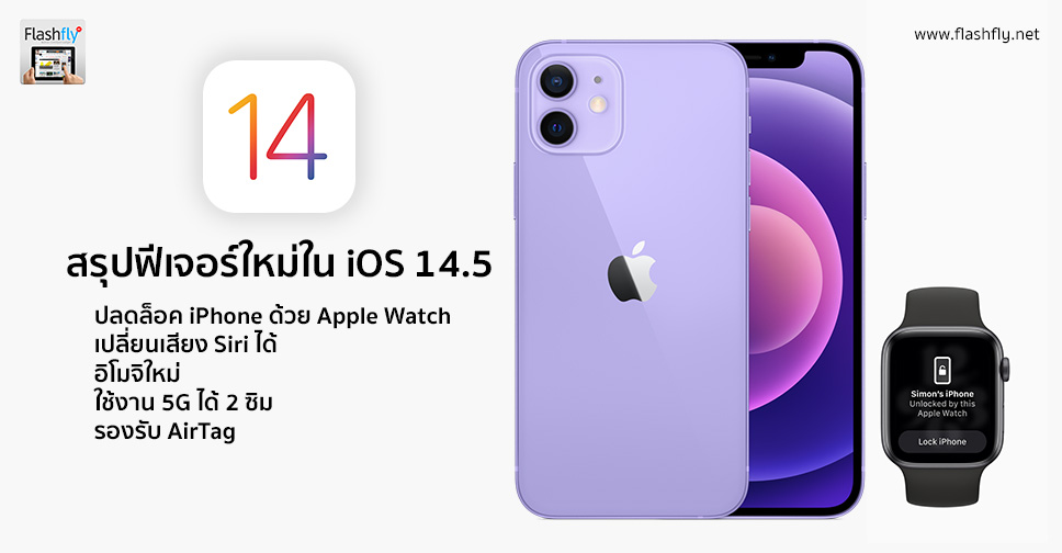 iOS 14.5 มาพร้อมคุณสมบัติใหม่ๆ ที่น่าตื่นเต้นสำหรับ iPhone อย่างการปลดล็อค iPhone ด้วย Apple Watch ขณะใส่หน้ากาก, เสียงของ Siri ที่หลากหลายยิ่งขึ้น, การควบคุมความเป็นส่วนตัวใหม่, ตัวเลือกโทนสีผิวที่ครอบคลุมยิ่งขึ้นสำหรับอิโมจิคู่รัก และอีกมากมาย iOS 14.5 พัฒนาต่อยอดมาจากประสบการณ์การใช้งาน iPhone ที่คิดขึ้นใหม่หมดใน iOS 14 และวันนี้พร้อมให้ผู้ใช้ได้สัมผัสแล้วในรูปแบบของการอัปเดตซอฟต์แวร์ฟรี