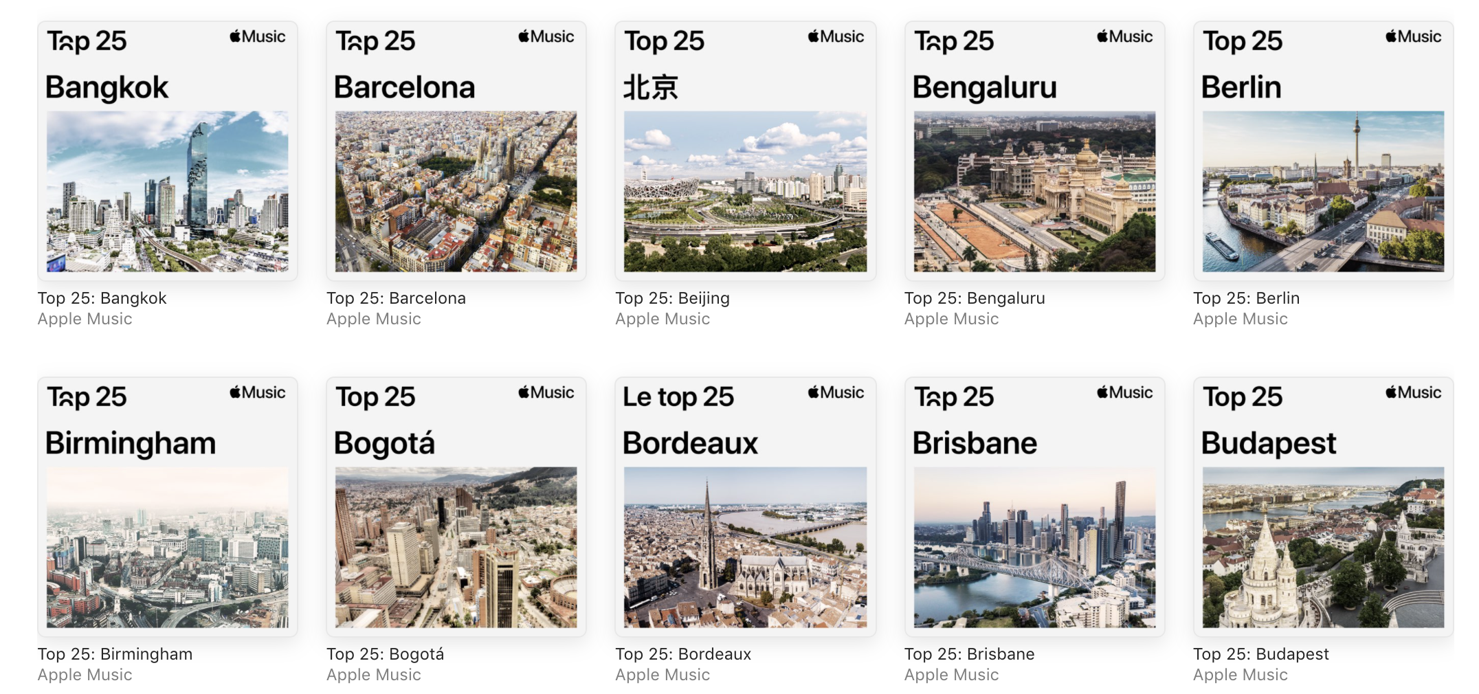 Apple Music มี “อันดับเพลงประจำเมือง” ดังต่อไปนี้