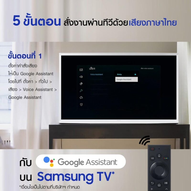 ง่ายขึ้นอีกขั้น! Samsung ทีวีให้ผู้ใช้สั่งการด้วยเสียงภาษาไทยผ่าน Google Assistant ใช้งานทีวีให้สะดวกยิ่งขึ้น พร้อมเปลี่ยนบ้านให้เป็นสมาร์ทโฮมด้วยเสียงของคุณ