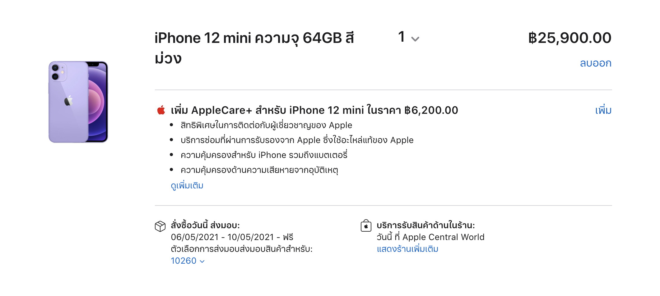 วันนี้เป็นวันที่แรกที่ Apple ได้วางจำหน่าย iPhone 12 และ iPhone 12 mini สีม่วงใหม่สุดสวยจะเข้ามาเติมเต็มดีไซน์แบบขอบแบนที่งดงามและกระจกด้านหลังที่ผ่านการตัดแต่งอย่างแม่นยำของ iPhone 12 อีกทั้งยังมีระบบกล้องคู่สุดล้ำ, จอภาพ Super Retina XDR พร้อมตัวเครื่องด้านหน้าแบบ Ceramic Shield, ชิป A14 Bionic และ 5G โดยที่ทั้งหมดจะวางจำหน่ายภายในร้าน และจัดส่งถึงมือลูกค้าทั่วโลก