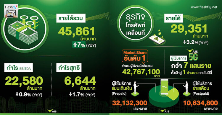 AIS เผยผลประกอบการแรกทำรายได้รวม 45,861 ล้านบาท เติบโต 7% เดินหน้าอัดงบลงทุน 30,000 ล้านบาท ขับเคลื่อนโครงสร้างพื้นฐานด้านดิจิทัล