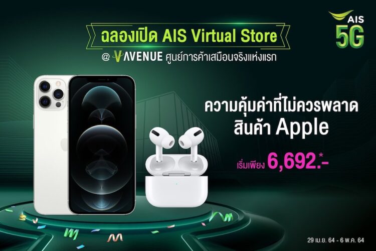 เมื่อสัปดาห์ที่ผ่านมา AIS ได้เปิดตัว Virtual Store ซึ่งรวมอยู่ในศูนย์การค้า Virtual Avenue หรือ ศูนย์การค้าเสมือนจริง และในโอกาสนี้จึงได้จัดโปรโมชั่นพิเศษ เพื่อเป็นการร่วมฉลองร้านค้าแห่งใหม่ในยุค New Normal ด้วยส่วนลด iPhone 12 และผลิตภัณฑ์อื่นๆ ของ Apple
