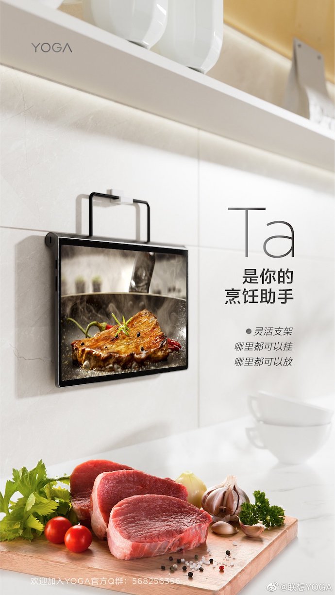 Lenovo Yoga Pad Pro มาพร้อมขาตั้งที่สามารถแขวนได้ สำหรับเปิดดูสูตรอาหารในครัว, ช่วยวางแท็บเล็ตในแนวราบ สำหรับงานศิลปะ และ ยังสามารถวางแท็บเล็ตในแนวนอน ในโหมดใช้เป็นจอภายนอก ซึ่งเหมาะสำหรับการรับชมภาพยนตร์ด้วย