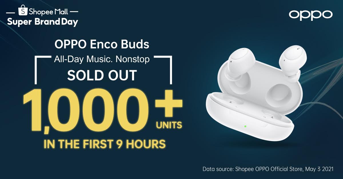 OPPO แบรนด์ผู้นำสมาร์ทโฟน พร้อมเสริมทัพพอร์ตสินค้า IoT ให้แข็งแกร่งมากยิ่งขึ้น โดยเมื่อเดือนที่ผ่านมาได้เปิดตัว OPPO Enco Buds หูฟังไร้สายในราคาสุดคุ้มที่สามารถมอบเสียงอันทรงพลังได้ทุกที่ทุกเวลา ล่าสุดเปิดจอง OPPO Enco Buds ผ่านแคมเปญ Super Brand Day บน Shopee พร้อมกระแสตอบรับอย่างล้นหลาม ด้วยยอดจองกว่า 1,000 ชิ้น ภายใน 9 ชั่วโมงแรก!