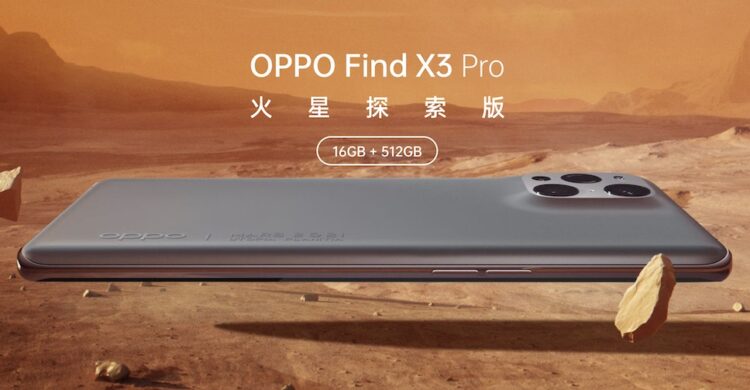 OPPO ร่วมฉลองปีแห่งความสำเร็จในการสำรวจดาวอังคารของประเทศจีน ด้วยการเปิดตัวสมาร์ทโฟนระดับพรีเมี่ยม OPPO Find X3 Pro Mars Exploration Edition มาในบอดี้โลหะสีเทา ซึ่งได้แรงบันดาลใจมาจากอุกกาบาต