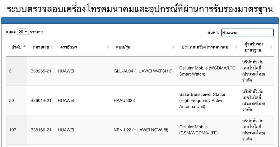 ข้อมูลจาก กสทช. ยืนยันว่า Huawei Watch 3 จะเป็นเชื่อที่ใช้ในการทำตลาด โดยมีรหัสรุ่น GLL-AL04 และค่อนข้างมั่นใจได้ว่าจะสนับสนุน eSIM จึงถูกส่งมาทดสอบมาตรฐานกับทาง กสทช. แบบเดียวกับสมาร์ทโฟน