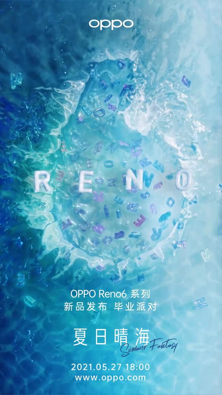 ก่อนหน้านี้ OPPO ถูกลือว่า จะเปิดตัวสมาร์ทโฟน OPPO Reno6 Series ในวันที่ 22 พฤษภาคมนี้ แต่ล่าสุดได้รับการยืนยันแล้วว่า จะเปิดตัวทางการในวันที่ 27 พฤษภาคมนี้ เวลา 18:00 น. ตามเวลาท้องถิ่นในประเทศจีน