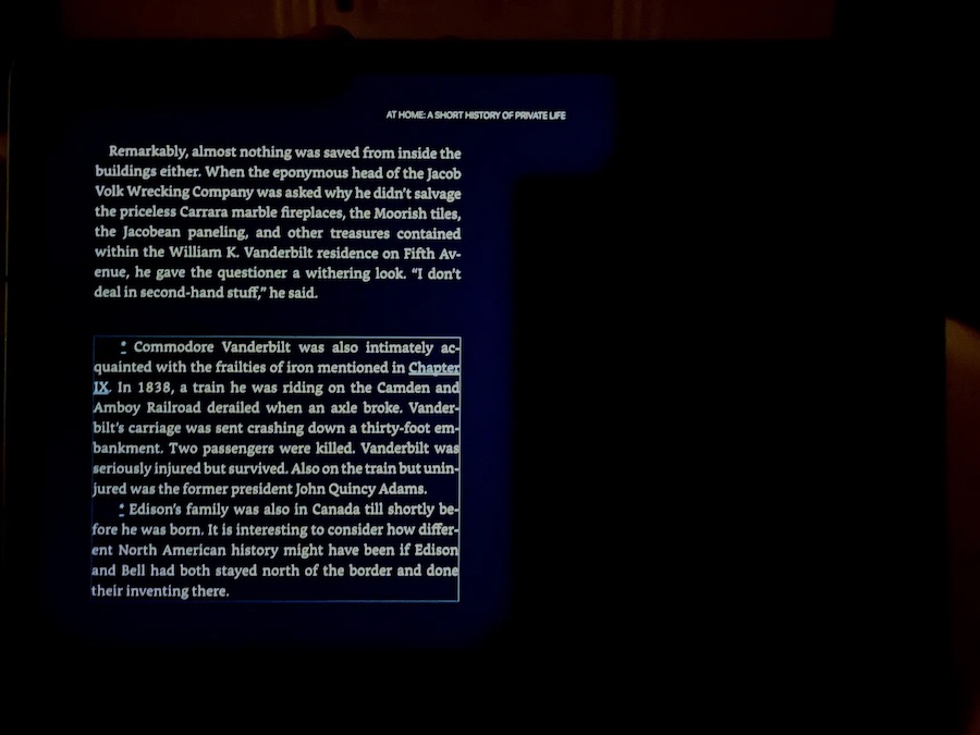 หลังจากทดสอบการอ่านด้วยแอพพลิเคชั่น Kindle และ Apple Books ในโหมดมืด โดยใช้งานอยู่ในห้องที่มืดมาก Dieter Bohn พบว่าจอแสดงผลของ iPad Pro รุ่นใหม่ ขนาด 12.9 นิ้ว มีรัศมีสีเทาแปลกๆ รอบๆ ข้อความ และไม่ได้เกิดจากเอฟเฟกต์ปกติของแอพ