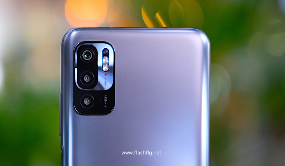 Redmi Note 10 5G ติดตั้งกล้องหลังมาให้ 3 ตัวในระบบ 48MP Triple Camera พร้อมแฟลช LED มุมล่างติดโลโก้ Redmi 5G ในแนวตั้ง
