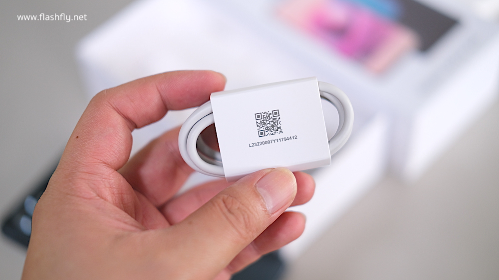 นอกจากสมาร์ทโฟนที่มีแบตเตอรี่ในตัว ภายในกล่องยังมี สายเคเบิล USB Type-C, อุปกรณ์ชาร์จแบตเตอรี่ 22.5W Power Adapter, เข็มจิ้มถาดซิมการ์ด, เคสใส, คู่มือแนะนำการใช้งาน Quick Start Guide, เอกสารด้านความปลอดภัย และ บัตรรับประกัน