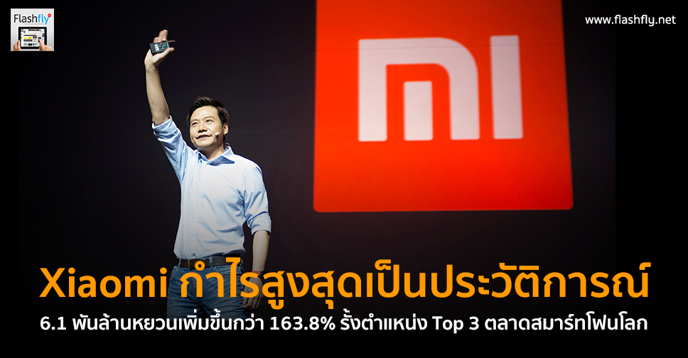 Xiaomi เผยกำไรสูงสุดเป็นประวัติการณ์ 6.1 พันล้านหยวนเพิ่มขึ้นกว่า 163.8% รั้งตำแหน่ง Top 3 ตลาดสมาร์ทโฟนโลก