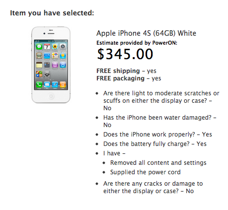 • iPhone 4S 64GB – $345 in perfect condition, $50 with cracks.