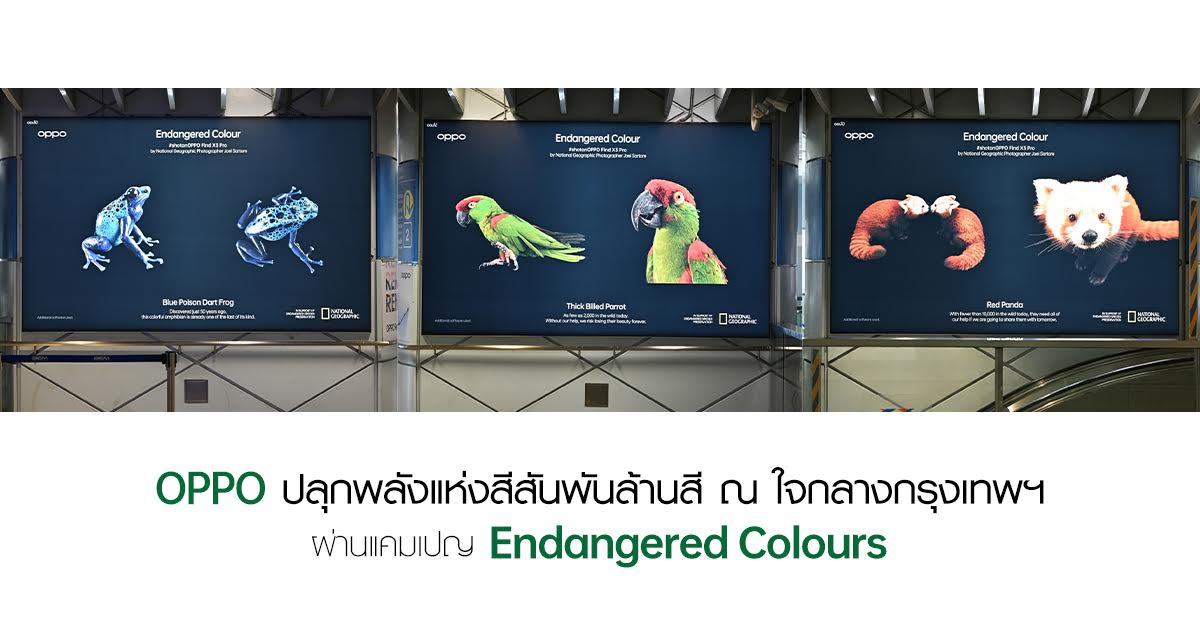 OPPO ร่วมมือกับ National Geographic ตอกย้ำพลังของสีสันและความเปราะบางของธรรมชาติที่ไม่ควรมองข้าม ผ่านแคมเปญ “Endangered Colours” กับการเก็บภาพสิ่งมีชีวิตที่กำลังสูญพันธุ์ เพื่อตอกย้ำความสำคัญของการ