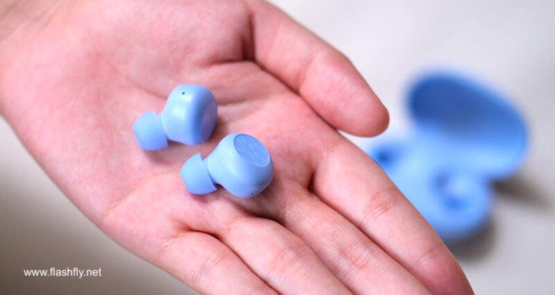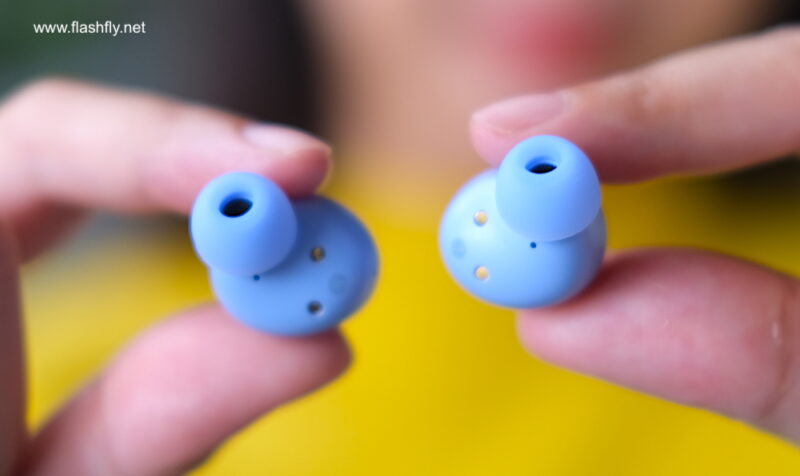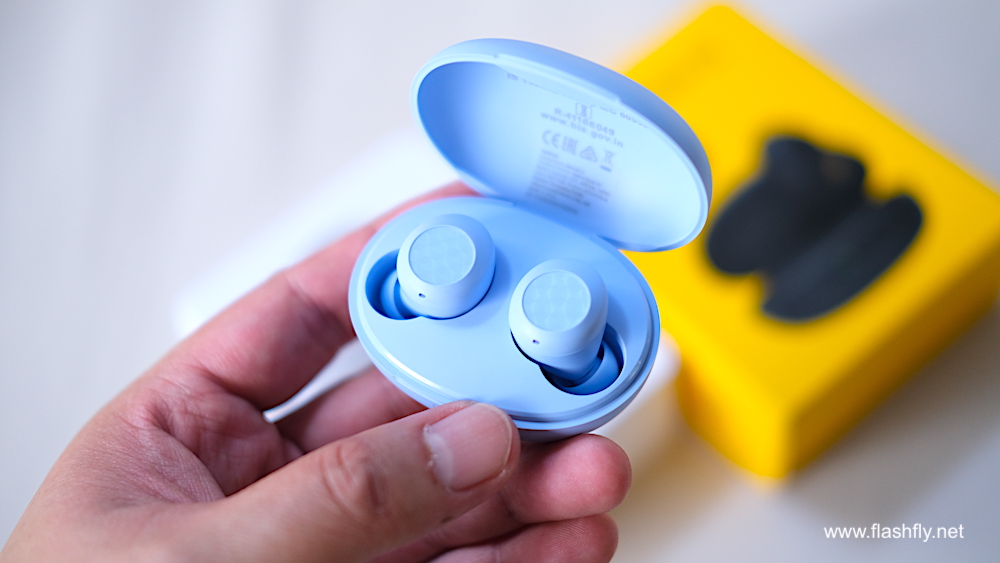 ถ้าหากเคสชาร์จมีดีไซน์มาจากก้อนหินตามธรรมชาติ ตัวหูฟัง realme Buds Q2 ทั้ง 2 ข้าง ก็ดูเหมือนก้อนกรวด รูปทรงกลมมน น้ำหนักเบากว่าแผ่นกระดาษ A4 ใช้สีเดียวกับตัวเคส