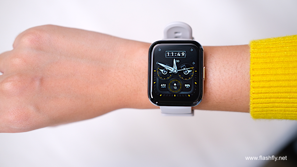 realme Watch 2 Pro ใช้ดีไซน์สี่เหลี่ยมขอบมุมโค้งมน ดูคล้ายกับ realme Watch รุ่นแรกที่เปิดตัวในปีที่แล้ว แต่มีการขยายจอแสดงผลให้ใหญ่ขึ้นจาก 1.4 นิ้ว เป็น 1.75 นิ้ว