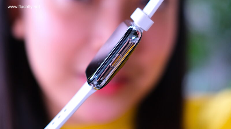 ด้านหลังติดตั้งเซ็นเซอร์สำหรับวัดอัตราการเต้นหัวใจ วัดระดับออกซิเจนในเลือด และมีหมุดแม่เหล็กสำหรับเชื่อมต่อกับอุปกรณ์ชาร์จแบตเตอรี่