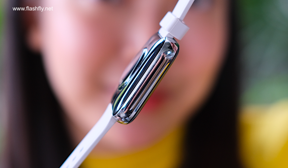 สายรัดข้อมือถอดเปลี่ยนได้ มีความกว้าง 22 มิลลิเมตร ปรับความยาวได้ 150 – 215 มิลลิเมตร ปั๊มสโลแกน DARE TO LEAP ไว้บนสาย และมีการออกแบบใหม่ใช้ระบบล็อคเหมือนสายนาฬิกา ทำให้ดีไซน์ในภาพรวมดูสปอร์ตขึ้น