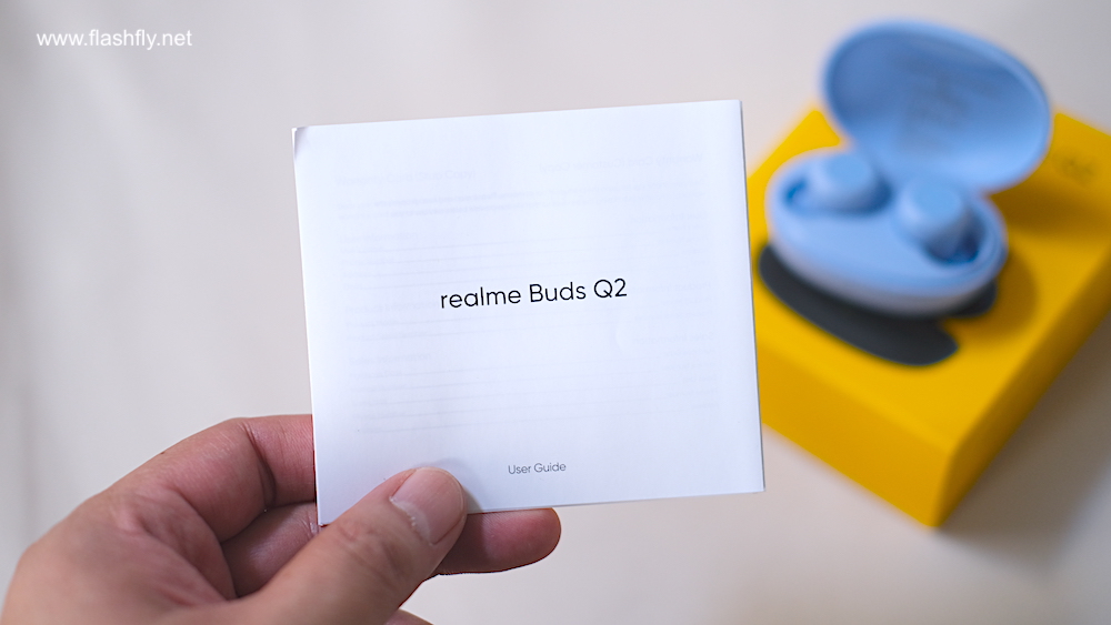 เมื่อได้รับ realme Buds Q2 มาครั้งแรก แล้วแกะออกจากกล่อง จะพบว่าเคสชาร์จมีแผ่นพลาสติกห่อหุ้มอยู่ โดยมีคำแนะนำการจับคู่ระบุไว้ด้วย โดยให้เปิดการเชื่อมต่อ Bluetooth ที่สมาร์ทโฟน จากนั้นเปิดฝาเคสแล้วให้แตะที่ด้านหลัง ซึ่งเป็นพื้นที่รับการสัมผัสของหูฟังทั้ง 2 ข้างพร้อมกัน ค้างไว้ 3 วินาที บนหน้าจอการตั้งค่า Bluetooth ในสมาร์ทโฟน จะแสดงชื่อ realme Buds Q2 ให้แตะเพื่อทำการจับคู่ หลังจากจับคู่หูฟังเรียบร้อยแล้ว สามารถตั้งค่าการใช้งานหูฟังอย่างเต็มรูปแบบจากแอพพลิเคชั่น realme Link ในเครื่อง