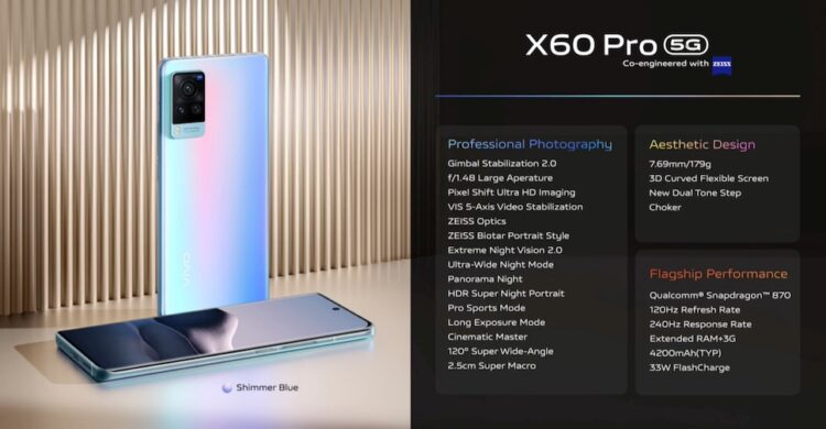Vivo เปิดตัวสมาร์ทโฟนเรือธงรุ่นใหม่ Vivo X60 Pro 5G ในไทยทางการแล้ว นับเป็นสมาร์ทโฟนในกลุ่มแรกของ Vivo ที่มีการจับมือกับ ZEISS บริษัทพัฒนาอุปกรณ์เลนส์ชั้นนำของโลก เพื่อร่วมกันพัฒนานวัตกรรมใหม่สำหรับเทคโนโลยีกล้องสมาร์ทโฟน และยังได้รับการพัฒนาเทคโนโลยีกันสั่น Gimbal Stabilization มาเป็นเจเนอเรชั่นที่ 2 แล้ว