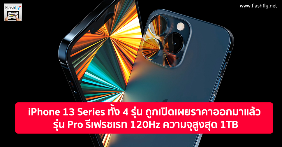 แหล่งข่าวในประเทศจีน เผยราคา iPhone 13 Series ทั้ง 4 รุ่น ออกมาแล้ว พร้อมสเปกหลักที่สำคัญ โดยเฉพาะ iPhone 13 Pro และ iPhone 13 Pro Max จะมาพร้อมจอแสดงผลที่ให้อัตราการรีเฟรช 120Hz มีความจุในตัวสูงสุด 1TB มากกว่ารุ่นปัจจุบัน 2 เท่า