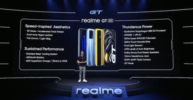 realme เคยเปิดตัวสมาร์ทโฟนเรือธง realme GT 5G มาแล้วในประเทศจีน แต่วันนี้พร้อมเปิดตัวในระดับโลกแล้ว มาพร้อมสโลแกน “Sheer Speed Flagship – เรือธงเร็วแรงเต็มสปีด” ใช้ชิปประมวลผล Qualcomm Snapdragon 888 และยังเสริมประสิทธิภาพด้วยเทคโนโลยีระบายความร้อน Stainless Steel VC Cooling System ช่วยระบายความร้อนเพิ่มขึ้น 50% และสามารถเข้าถึงอุณหภูมิคอร์ของ CPU ได้ถึง 15 องศาเซลเซียส