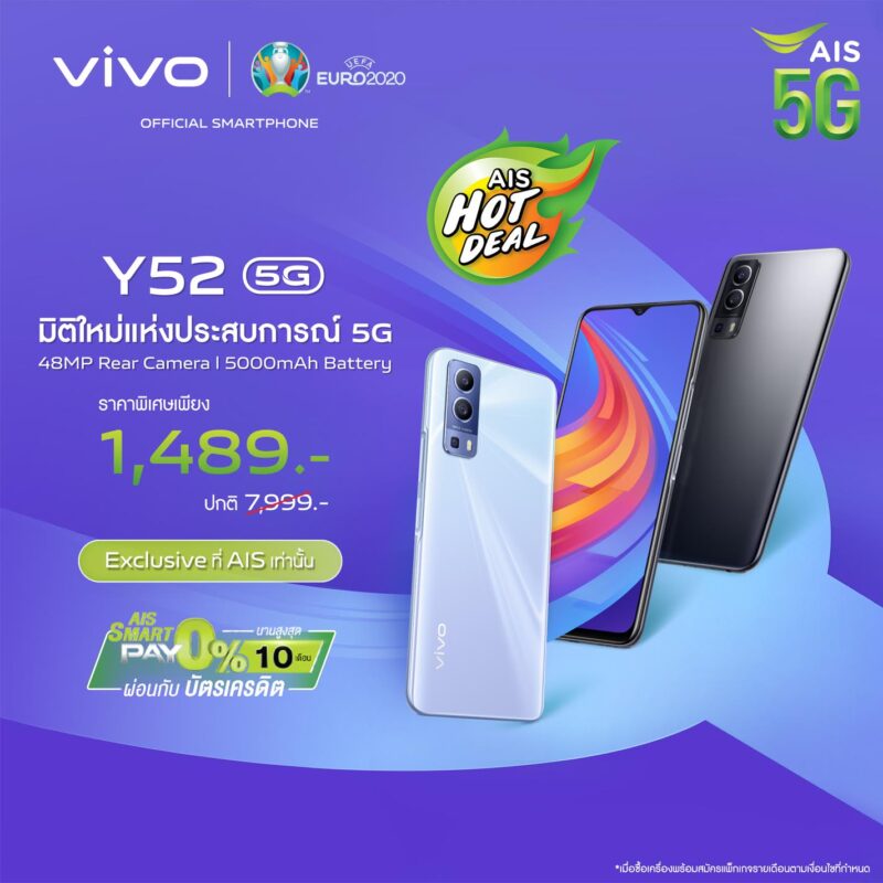 เตรียมเป็นเจ้าของ vivo Y52 5G สุดยอดสมาร์ตโฟน 5G ตระกูล Y Series ในราคาเริ่มต้นเพียง 1,489 บาท ที่ AIS ทุกสาขา 17 มิ.ย. นี้