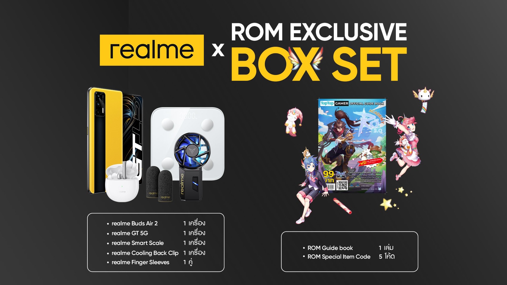 และได้ร่วมกันจัดทำ realme GT 5G Exclusive Box Set ซึ่งนอกจากท่านจะได้รับสมาร์ทโฟน realme GT 5G ใหม่ล่าสุดและของที่ระลึกพิเศษจาก realme แบบจุใจ แล้วยังได้รับไอเทมพิเศษในเซ็ต Wonderland Fantasy ซึ่งประกอบด้วยอุปกรณ์สำหรับสวมใส่ตัวละครทั้งหมด 5 ชิ้น รวมถึงหนังสือคู่มือเล่มแรกสำหรับเกม Ragnarok M พิมพ์ 4 สีทั้งเล่ม ไปสะสมกันอีกด้วย