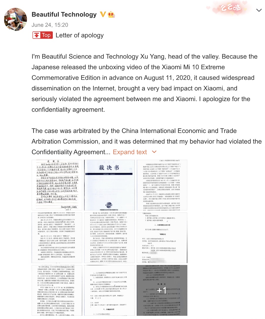 ในเดือนสิงหาคมปีที่แล้ว Gu Xuyang ผู้ดูแล Beautiful Technology ได้เผยแพร่วิดีโอแกะกล่องสมาร์ทโฟนของ Xiaomi ก่อนที่จะได้รับการเปิดตัวทางการ ซึ่งเป็นการละเมิดข้อตกลงการรักษาความลับที่เขาทำไว้กับ Xiaomi
