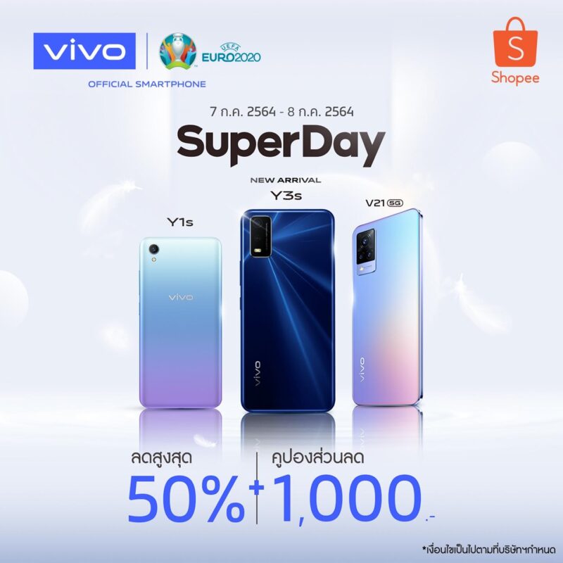 vivo แบรนด์สมาร์ตโฟนชั้นนำระดับโลก รีเฟรชความตื่นเต้นครั้งใหม่ต้อนรับ หน้าฝนกับโปรโมชันสุดพิเศษ vivo “Brand OF THE DAY” พบกับสมาร์ตโฟน vivo และอุปกรณ์เสริมลดราคาพิเศษสูงสุด 50% พร้อมส่วนลดสูงสุดถึง 1,000 บาท และของแถมอื่นๆ อีกมากมาย ขนทัพกันมาลดราคาจัดเต็ม พ่วงด้วยโปรโมชันเอาใจคนรัก vivo ให้สามารถเป็นเจ้าของสมาร์ตโฟนเครื่องใหม่ได้ง่ายๆ เพียงแค่ปลายนิ้ว ผ่านทางแอปพลิเคชัน Shopee ในวันที่ 8 กรกฎาคม 2564 เท่านั้น เตรียมพบกับดีลสุดพิเศษ และ Special Gift สุดคุ้มค่า ตามรายละเอียดดังต่อไปนี้