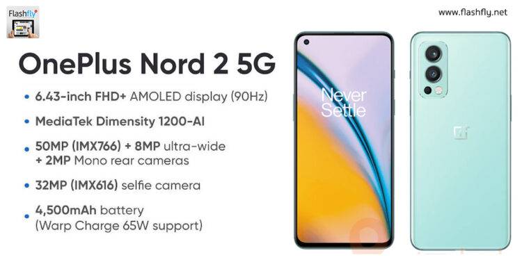 OnePlus Nord 2 ถูกลือว่า จะมาพร้อมจอแสดงผล FHD + sAMOLED ขนาด 6.43 นิ้ว อัตราการรีเฟรช 90Hz รองรับ HDR10+ ป้องกันรอยด้วยกระจก Corning Gorilla Glass 5 ตอบสนองความบันเทิงด้วยลำโพงคู่ ใช้ชิปประมวลผล MediaTek Dimensity 1200 รองรับ 5G ที่เก็บข้อมูลแบบ UFS 3.1 แบตเตอรี่ 4,500mAh ชาร์จเร็ว 65W