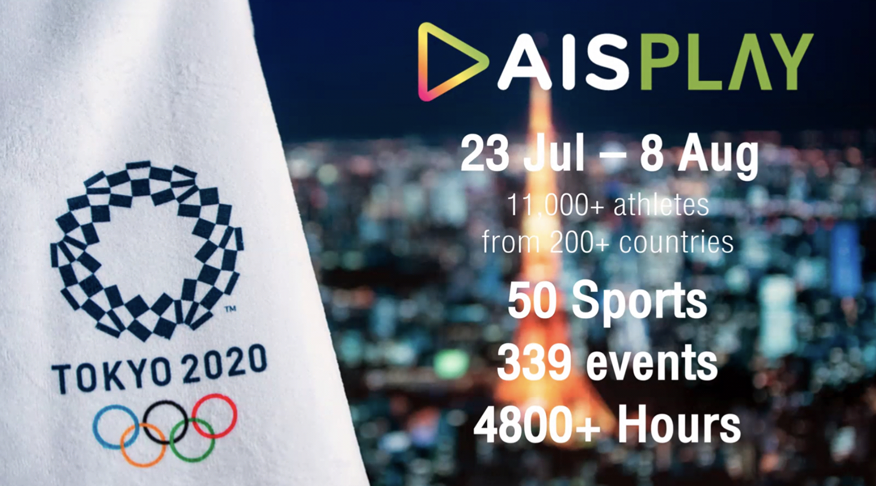 แฟนกีฬาชาวไทยสามารถรับชมการแข่งขันกีฬา Tokyo Olympic Games 2020 ผ่านทาง AIS PLAY ได้แล้วตั้งแต่วันนี้ โดยการแข่งขันอย่างทางการจะเริ่มขึ้นในระหว่างวันที่ 23 กรกฎาคม – 8 สิงหาคม 2564 โดยมีการแข่งขันทั้งหมด 50 ชนิดกีฬา และมีนักกีฬาจากทั่วโลกกว่า 11,000 คนที่เข้าร่วมกันแข่งขันในครั้งนี้ และสามารถตรวจสอบตารางการแข่งขันได้ที่เว็บไซต์ ais.th/olympics