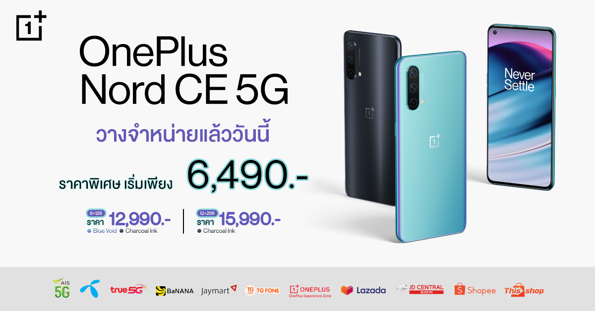 หาซื้อและเป็นเจ้าของ OnePlus Nord CE 5G ผ่านตัวแทนจำหน่ายอย่างเป็นทางการทั่วประเทศพร้อมรับฟรี! ของแถมสุดพิเศษจากแต่ละช่องทางการจำหน่ายและผู้ให้บริการเครือข่ายทั้งอย่าง AIS, DTAC และ TrueMove H รวมทั้ง Jaymart, BaNANA IT, TG FONE ที่ร่วมรายการทั่วประเทศ และ OnePlus Experience Zone by TG FONE ตลอดจนช่องทางออนไลน์ได้ที่ Lazada, Shopee, JD Central และ Thisshop