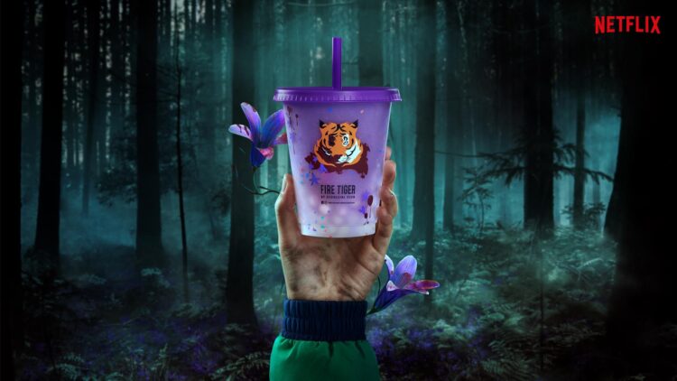 “เสือพ่นไฟคืนชีพ” เป็นเมนูใหม่สุดเอ็กซ์คลูซีฟจากความร่วมมือของ Netflix และ Fire Tiger โดยเป็นเครื่องดื่มสีม่วงสดใส สูตรที่ตั้งใจรังสรรค์ขึ้นโดยเฉพาะ โดยได้รับแรงบันดาลใจจากสมุนไพรคืนชีพในซีรีส์ ผีดิบคลั่ง บัลลังก์เดือด (Kingdom) ซึ่งเจ้าสมุนไพรดอกสีม่วงนี้สามารถชุบชีวิตคนตายให้ฟื้นคืน ขณะที่ “เสือพ่นไฟคืนชีพ” ก็คงคอนเซ็ปต์การคืนชีพด้วยความสดชื่นของ มังคุด อัญชัน เเละโซดาที่เป็นส่วนผสมหลัก พร้อมไข่มุกป๊อปรสลิ้นจี่และบุกแถมกิมมิกสุดเซอร์ไพรส์กับแก้วเปลี่ยนสี Limited Edition ที่มีจำนวนจำกัด โดยเป็นแก้วแบบ reusable cup ซึ่งสามารถนำกลับมาใช้ซ้ำได้ ซึ่งสีของแก้วจะค่อยๆ เปลี่ยนไปตามอุณหภูมิ ขอบอกว่าสัมผัสความเซอร์ไพรส์แบบนี้กันได้เฉพาะกับเมนูพิเศษนี้เท่านั้น