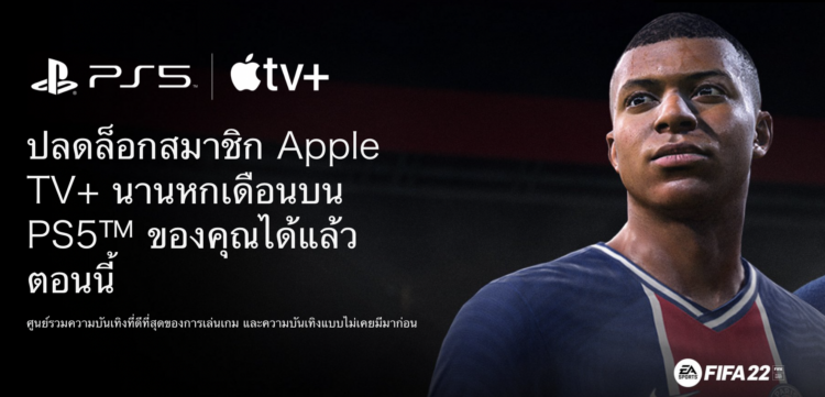 โปรดติดตามรายละเอียดเพิ่มเติมที่ https://www.playstation.com/th-th/deals/6-months-trial-apple-tv-ps5-offer/