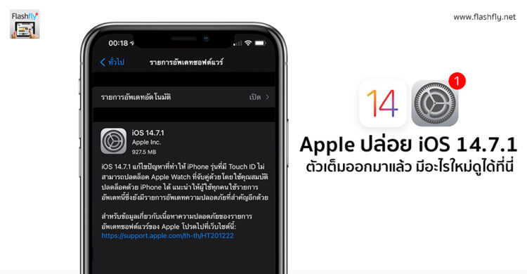 หลังจากที่ Apple ได้ปล่อย iOS 14.7 และ iPadOS 14.7 ตัวเต็มออกมาให้ผู้ใช้งานทั่วไปได้อัพเดทไปก่อนหน้า ล่าสุดวันนี้ก็ได้ปล่อย iOS 14.7.1 และ iPadOS 14.7.1 ออกมาแก้ไขปัญหาที่ทำให้ iPhone รุ่นที่มี Touch ID ไม่สามารถปลดล็อค Apple Watch ที่จับคู่ด้วยโดยใช้คุณสมบัติปลดล็อคด้วย iPhone ได้ โดย Apple ได้แนะนำให้ผู้ใช้ทุกคนใช้รายการอัพเดทนี้ซึ่งยังมีรายการอัพเดทความปลอดภัยที่สำคัญอีกด้วย