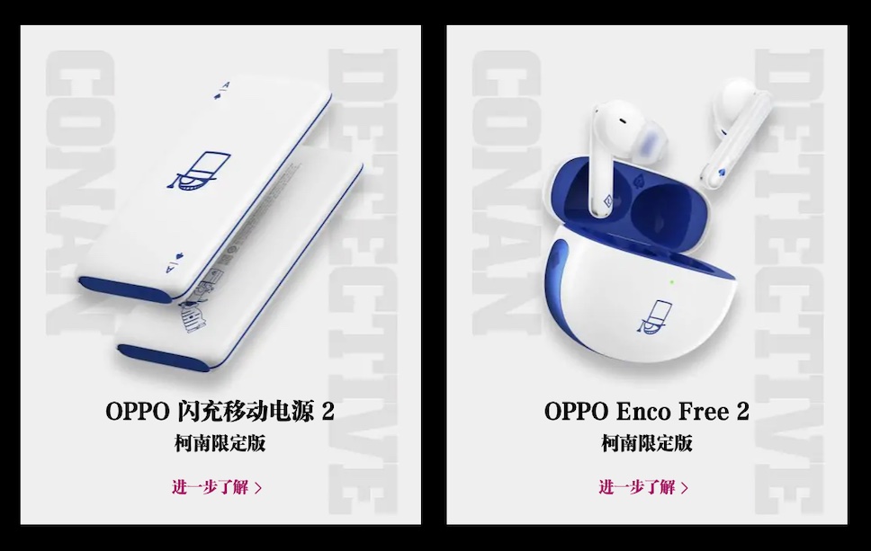 OPPO เปิดตัวสมาร์ทโฟน OPPO Reno6 Pro+ รุ่นพิเศษ Detective Conan Edition ซึ่งเป็นการนำคาร์แรคเตอร์จากการ์ตูนยอดนักสืบจิ๋วโคนันมาทำเป็นลวดลายบนตัวสมาร์ทโฟน รวมถึงใช้เป็นธีมใน User Interface โดยผลิตออกมาเพียง 10,000 เครื่องเท่านั้น