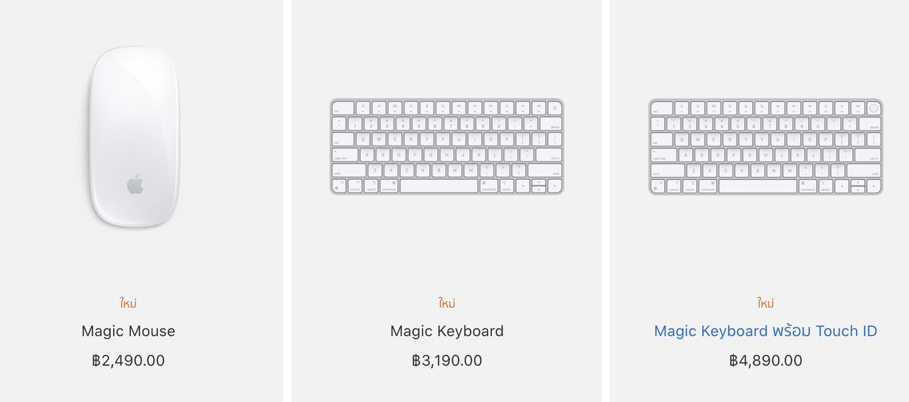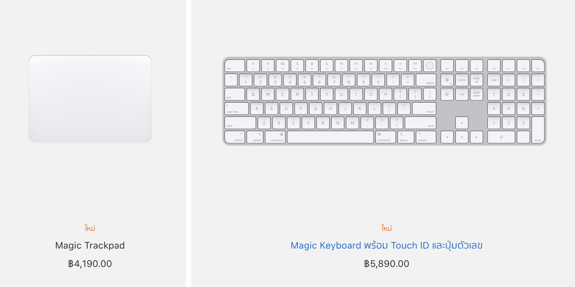 — Magic Keyboard มอบประสบการณ์ในการพิมพ์ที่สะดวกสบายและแม่นยำอย่างเหลือเชื่อ รุ่นใหม่ที่มาพร้อม Touch ID ช่วยให้ผู้ใช้ยืนยันตัวตนได้อย่างรวดเร็ว ง่ายดาย และปลอดภัยเมื่อล็อกอินหรือซื้อสินค้า (หมายเหตุ: Touch ID จะใช้งานได้ก็ต่อเมื่อคีย์บอร์ดจับคู่อยู่กับ Mac ที่ใช้ M1 เท่านั้น และวันนี้ Magic Keyboard ยังมีปุ่มสำหรับ Spotlight, “การป้อนตามคำบอก”, “ห้ามรบกวน” และอิโมจิ