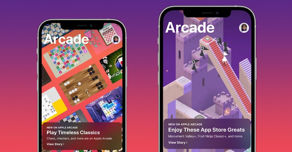 ในช่วงเปิดตัว Apple Arcade มีเกมให้เล่น 100 เกม ซึ่งทั้งหมดเป็นเกมเอ็กซ์คลูซีฟที่หาเล่นไม่ได้จากที่ไหน หลังจากนั้น Apple ก็ทยอยป้อนเกมใหม่ๆ ลงใน Apple Arcade ทุกสัปดาห์ และยังมีการเพิ่มหมวดหมู่ใหม่อย่าง “Timeless Classics” และ “App Store Greats” ซึ่งรวมเกมคลาสสิคมากกว่า 30 เกม เช่น Monument Valley, Cut the Rope, Fruit Ninja และ Angry Birds