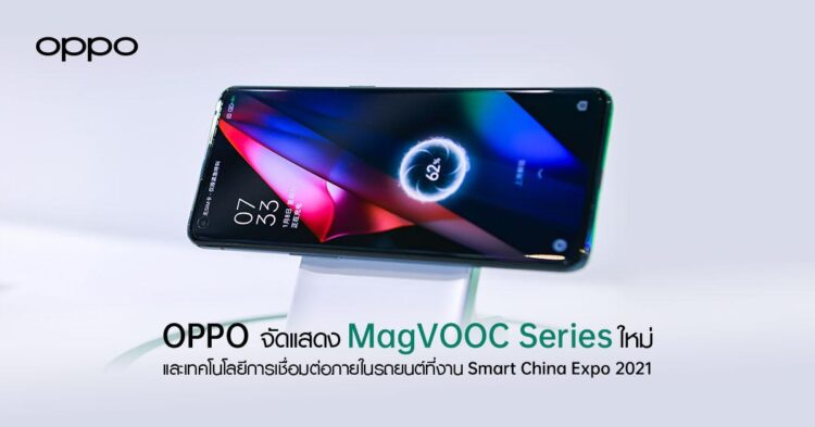 OPPO แบรนด์อุปกรณ์อัจฉริยะชั้นนำระดับโลก ร่วมเป็นส่วนหนึ่งในงาน Smart China Expo 2021 ภายใต้แนวคิด “Smart Technology: Empowering Economy, Enriching Life” ซึ่งจัดขึ้นที่เมืองฉงชิ่ง ประเทศจีน ระหว่างวันที่ 23-26 สิงหาคม 2564 โดย OPPO เปิดตัว OPPO MagVOOC flash charging series รวมถึงเทคโนโลยีการเชื่อมต่อในรถยนต์ และอื่นๆ