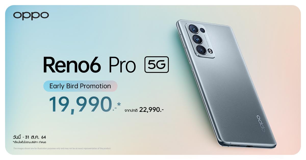 OPPO แบรนด์สมาร์ทโฟนชั้นนำในไทย เปิดตัว OPPO Reno6 Pro 5G อย่างเป็นทางการผ่าน OPPO Reno6 Pro 5G UNBOX LIVESTREAMING มอบประสบการณ์ความเร็วแรงในระดับแฟล็กชิพ พร้อมให้คุณสัมผัสทุกช่วงอารมณ์ความรู้สึกด้วยภาพและวิดีโอพอร์ตเทรตที่สวยงามกว่าใคร โดยจะวางจำหน่ายบนช่องทางออนไลน์ (Online Exclusive) ในราคาเพียง 22,990 บาท