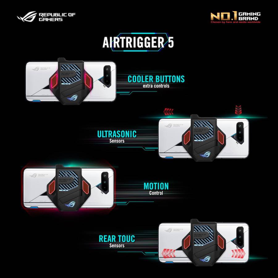 ควบคุมได้มากกว่ากับ AirTrigger 5 เพิ่มปุ่มกดอีก 2 ปุ่มใน Aero Active Cooler 5 เพื่อเพิ่มประสบการณ์ที่เหมือนเล่นเกมคอนโซลมากขึ้น พร้อมด้วย Motion Control กว่า 10 แบบ และ Ultrasonic Sensors ปุ่ม LR คู่ใจสาย FPS ที่ด้านข้างของเครื่อง