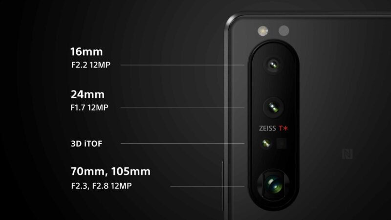 Xperia 1 III ได้รับการออกแบบมาเพื่อรองรับการถ่ายภาพขั้นสูง ด้วยเลนส์ 3 ตัวที่ได้รับการพัฒนาขึ้นมาใหม่ช่วยเพิ่มประสิทธิภาพในการถ่ายภาพ ประกอบด้วยเลนส์ความยาวโฟกัสอเนกประสงค์ 4 ขนาด 16 ม.ม.24 ม.ม. 70 ม.ม. และ 105 ม.ม.เหมาะอย่างยิ่งสำหรับการถ่ายภาพทิวทัศน์ ภาพบุคคล หรือสัตว์ ผสานการทำงานกับเลนส์ ZEISS ที่ออกแบบมาสำหรับสมาร์ทโฟน Xperia พร้อมการเคลือบผิวเลนส์ด้วย ZEISS T* Coating ซึ่งเป็นคุณสมบัติพิเศษที่ช่วยให้ได้การแสดงผลและให้คอนทราสต์ที่สวยงาม รวมถึงสามารถลดแสงสะท้อนได้เป็นอย่างดี