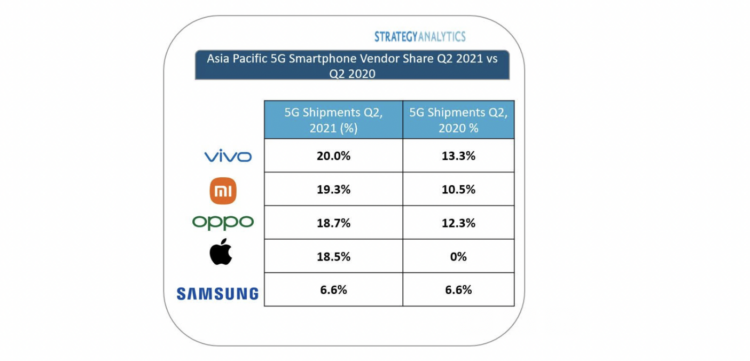 vivo แบรนด์สมาร์ตโฟนชั้นนำระดับโลก ประกาศความสำเร็จในยอดจัดส่งสมาร์ตโฟน 5G ในภูมิภาคเอเชียแปซิฟิกของไตรมาสที่ 2 ปี 2564 จากรายงานล่าสุดของบริษัทวิจัยข้อมูลตลาดชั้นนำอย่าง Strategy Analytics[1] ซึ่งถือเป็นครั้งแรกของ vivo ที่ประสบความสำเร็จในการมียอดจัดส่งสมาร์ตโฟน 5G มากที่สุดในภูมิภาคเอเชียแปซิฟิกภายในหนึ่งไตรมาส โดย vivo สามารถครองส่วนแบ่งของยอดจัดส่งสมาร์ตโฟน 5G ได้มากถึง 1 ใน 5 สำหรับตลาดในภูมิภาคเอเชียแปซิฟิก ในอัตราการเติบโตของการจัดส่ง (Shipment) ต่อปีสูงถึง 215% ทั้งนี้ ด้วยการผสานระหว่างเทคโนโลยีชั้นนำและคุณภาพระดับสูงส่งผลให้  สมาร์ตโฟน vivo กลายเป็นอุปกรณ์ 5G ที่ได้รับความนิยมมากที่สุดในภูมิภาค