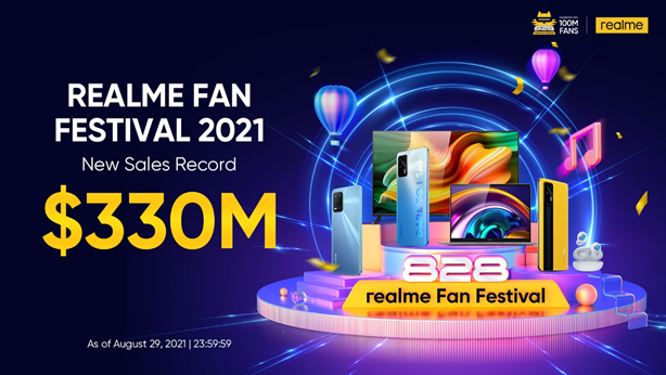 realme แบรนด์สมาร์ทโฟนที่เติบโตเร็วที่สุดในโลก ปิดยอดขายรวม 330 ล้านดอลลาร์ในช่วงเทศกาล realme Fan Festival 2021 เติบโตถึง 38% เมื่อเทียบกับปีที่ผ่านมา แบ่งเป็น ยอดขายสมาร์ทโฟน 1.6 ล้านเครื่อง และอุปกรณ์ AIoT 225,000 เครื่อง